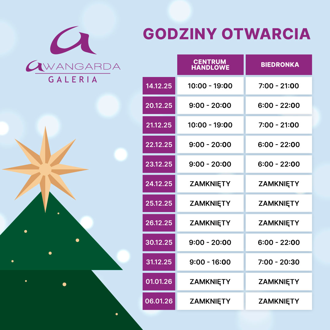 Drodzy klienci!✨ W okresie świąteczno-noworocznym godziny otwarcia galerii ulegają zmianie. Zaplanujcie swoje zakupy i wizyty wcześniej, aby ten czas upłynął w spokoju i radości! ❤