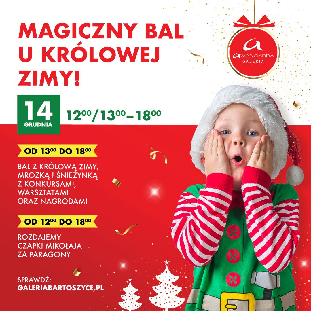14 grudnia nasza galeria zamieni się w prawdziwe zimowe królestwo! 👑 Przygotujcie się na niezapomnianą przygodę, bo Królowa Zimy, Mrozka i Śnieżynka zapraszają Was na spektakl pełen tańca, zabawy i…