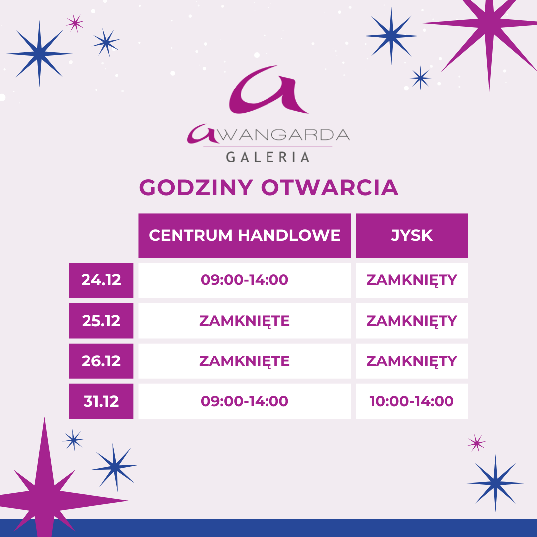 Drodzy klienci!✨ 🗓W okresie świąteczno-noworocznym godziny otwarcia Galerii Awangarda ulegają zmianie. Zaplanujcie swoje zakupy i wizyty wcześniej, aby ten czas upłynął w spokoju i radości!🫶 Do zobaczenia w Galerii Awangarda!❤🎄